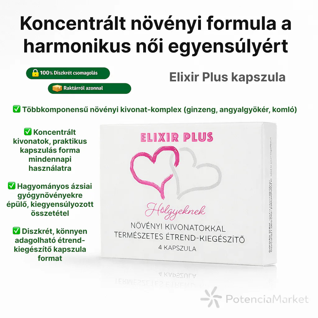Az Elixir Plus vágyfokozó kapszula egy természetes összetevőkre épülő alternatíva, amely segíthet megnyitni az utat az intimebb, izgalmasabb kapcsolódás felé. Ha szeretnél újra felszabadultabban, kíváncsibban fordulni a gyengédség felé, próbáld ki és tapasztald meg, mit adhat hozzá a közös pillanatokhoz.