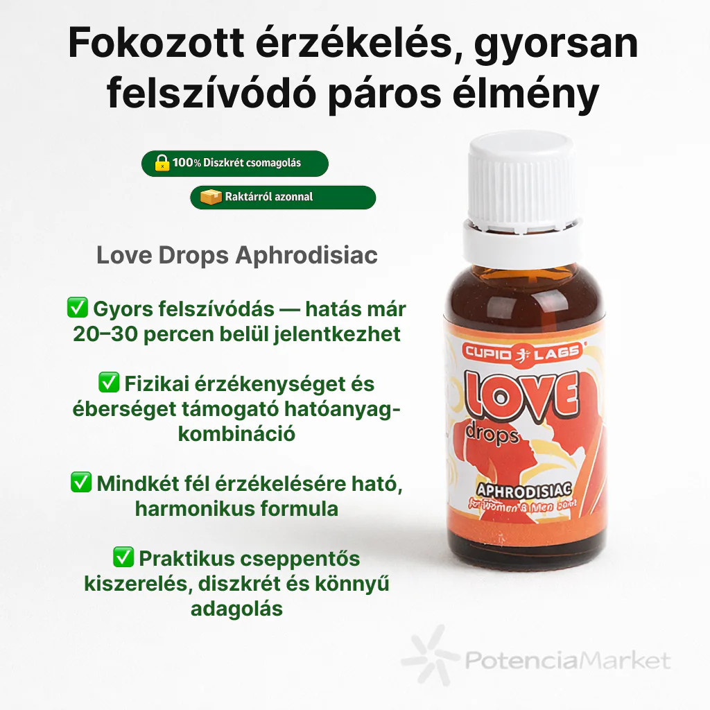 A modern vágyfokozó cseppek, köztük a Love Drops is, ezt a régi tudást ötvözik a mai kor igényeivel: tiszta formulák, megbízható adagolás, gyors felszívódás és párokra szabott hatásmechanizmus. A mostani készítmények célja nem csupán a vágy növelése, hanem az érintések, az érzékelés és az orgazmusélmény finomhangolása is.