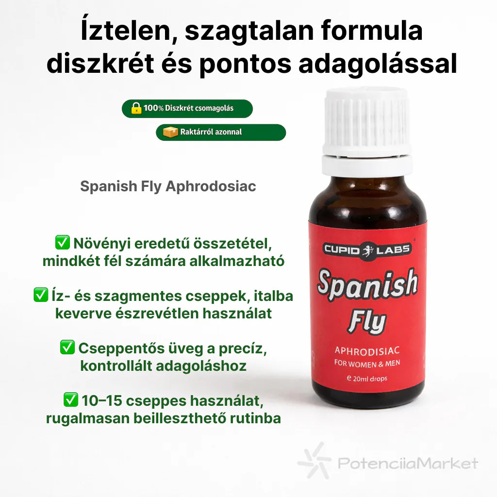 A cseppeknek nincs íze vagy szaga. A Spanish Fly For Women & Men cseppek az ideális lehetőség a libidód növelésére vagy partnered libidójának növelésére. A palack csepegtetővel van felszerelve.